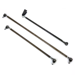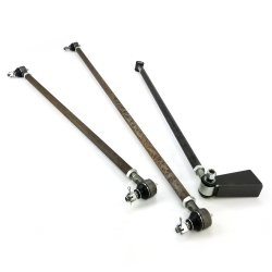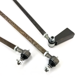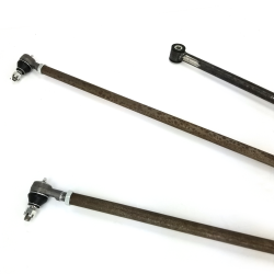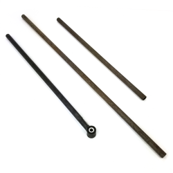 Helix™ Early Ford 27” hairpin radius rod is constructed from heavy duty forged steel with a 4.5” spread center to center eye spacing and 5/8-18 RH thread on both ends. Designed for use with 5” center to center hairpin batwing or axle brackets on input end and male rod adjuster, spherical rod end, or “Ford” type tie rod end on rear (output) end. Construction is rugged 7/8” O.D. heat treated carbon steel tubing, unfinished.