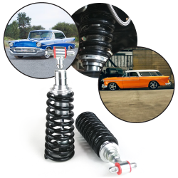 The Helix Coilover Shock Series Puts You In Control of Your Suspension. Our Hardened Steel Bodied Shocks Offer Ultimate Performance, and Look Great Too!This Helix Front 500lb small block coil over kit is for your 1955-1957 Tri-Five Belair Nomad applications. These kits are bolt on ready (NO WELDING) and will give you 3" of adjustment on your ride height plus killer handling!