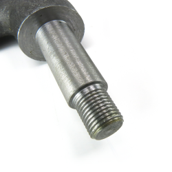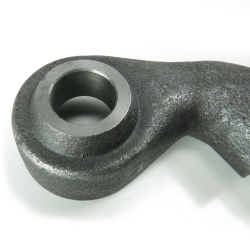 These forged steel shock mounts are positioned below a spring-over type solid axle and mount eye secures into spring perch bolt. Shock absorber eye bolts into 5/8” stud on mount and is secured by nylon locking nut and washer. Found on early Ford solid axle. Kit contains two mounts, two nylon locking nut, two plain washers.