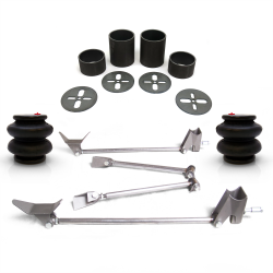 This ultimate kit includes Heavy Duty Triangulated Full Size Universal Four Link Kit with Shock Hardware, 2 1/2” Single Port Air Bags with a load rating of 2600 lbs and a Universal Rear Air Bag Bracket Kit.
