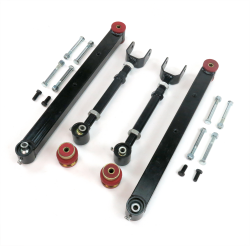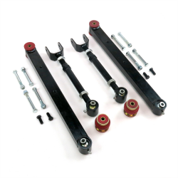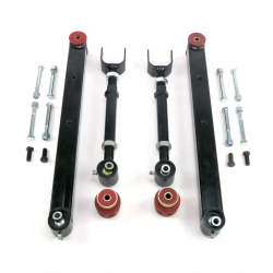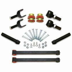 Every kit comes loaded: custom bolt-on brackets, beefy 1" OD 4-link bars, oversized stainless adjusters, a full upper coilover crossmember, panhard bar, deluxe coilover shocks, powder-coated springs, axle brackets, chassis mounts, all the hardware, and clear instructions to get you there without guesswork.