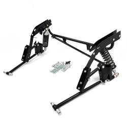 Every kit comes loaded with stout bolt-on brackets, beefy oversized stainless adjusters, a full upper coilover crossmember, and heavy-duty 1" OD 4-link bars that don’t flinch under pressure. You’ll also get deluxe coilover shocks and springs, axle brackets, bolt-on chassis mounts, and all the hardware you need to bolt it in and get after it. Built tough, built right, and ready to run.