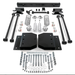 Every kit comes loaded: custom bolt-on brackets, beefy oversized steel adjusters, a full upper coilover crossmember, panhard bar, stout 1" OD heavy-wall 4-link bars, deluxe coilover shocks, powder-coated springs, axle brackets, chassis mounts, all the hardware, and clear instructions even your buddy can follow.