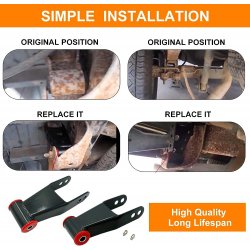 Helix lowering / drop shackle kits are easy to install and an economical way to lower the rear of your truck 1 or 2 inches to help give that leveled appearance. Constructed from heavy gauge die stamped steel featuring OEM quality poly / vulcanized rubber bushings to insure a perfect fit and superior quality for a long quiet maintenance free life.